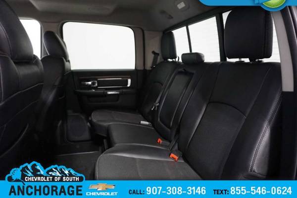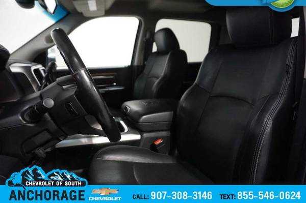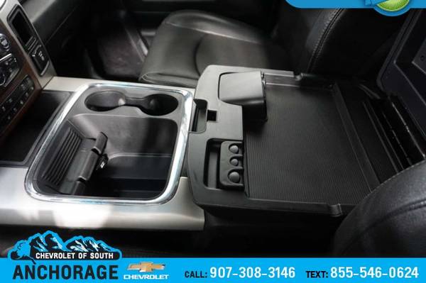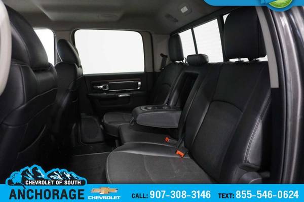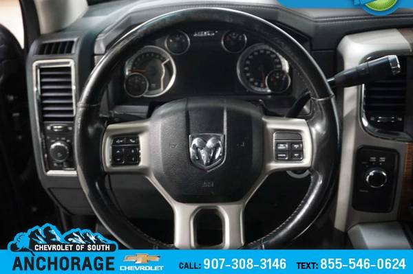 CHROME TUBULAR SIDE STEPS, BLACK, LEATHER TRIMMED BUCKET SEATS Power Lumbar Adjust, Bucket Seats, Heated Second Row Seats, High Back Seats, Rear 60/40 Split Folding Seat, Folding Flat Load Floor Storage, Ventilated Front Seats, Full Length Upgraded Floor Console, Power 10-Way Memory Driver & 6-Way Passenger Seats, SPRAY IN BEDLINER, REMOTE START SYSTEM, POWER FOLDING CHROME TRAILER TOW MIRRORS Exterior Mirrors w/Heating Element, Chrome Exterior Mirrors, Exterior Mirrors w/Memory, Exterior Mirrors w/Supplemental Signals, Exterior Mirrors Courtesy Lamps, Trailer Tow Mirrors, TRANSMISSION: 6-SPEED AUTOMATIC (66RFE) (STD), ENGINE: 6.4L HEAVY DUTY V8 HEMI W/MDS 11.50 Rear Axle, 180 Amp Alternator, 5.2 Additional Gallons of Gas, Electronically Controlled Throttle, GVWR: 10,000 lbs, Next Generation Engine Controller, Hemi Badge. Ram Laramie with Granite Crystal Metallic Clearcoat exterior and Black interior features a 8 Cylinder Engine with 410 HP at 5600 RPM*.