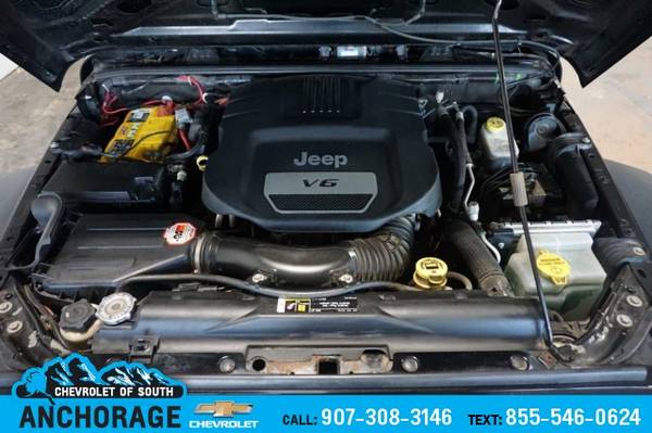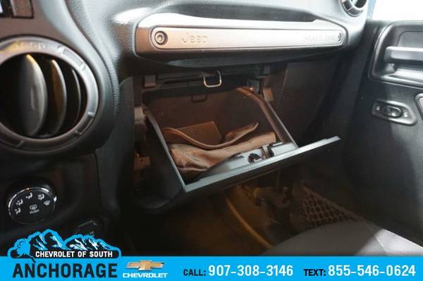 QUICK ORDER PACKAGE 24S SPORT S Engine: 3.6L V6 24V VVT, Transmission: 5-Speed Automatic (W5A580), Chrome/Leather Wrapped Shift Knob, Leather Wrapped Steering Wheel, Auto Dim Mirror w/Reading Lamp, Front 1-Touch Down Power Windows, Power Heated Mirrors, Security Alarm, Power Locks, Remote Keyless Entry, Deep Tint Sunscreen Windows, TRANSMISSION: 5-SPEED AUTOMATIC (W5A580) Tip Start, Hill Descent Control, BLACK 3-PIECE HARD TOP Freedom Panel Storage Bag, Rear Window Defroster, Rear Window Wiper/Washer, CONNECTIVITY GROUP Vehicle Information Center, Uconnect Voice Command w/Bluetooth??, Tire Pressure Monitoring Display, RADIO: 430 Remote USB Port, ANTI-SPIN DIFFERENTIAL REAR AXLE, SIRIUS SATELLITE RADIO, For More Info Call(907) 308-3146, ENGINE: 3.6L V6 24V VVT (STD). Jeep Sport S with Black Clearcoat exterior and Black interior features a V6 Cylinder Engine with 285 HP at 6400 RPM*.