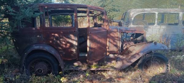 Lots of patina on this Model A for someone who is interested in a restoration project. Body and chassis really is in remarkable shape for as old as it is, and for where it has been stored. Located in Anchor Point, near the bridge over the Anchor River, access to trailer it is not a problem. It has all body panels intact, a complete engine, and four original spoke wheels. All the windows as you can see in the pictures are broken out. I regret putting this project off every year as it is in good condition for a complete restoration. Then a triple by-pass surgery has compromised my strength, my motivation, and my ambitions of wanting a really old cool car for a really old cool dude like me. Now I'm just cynical like most people my age, but hey, I earned it. I will take respectful offers. The title went missing about 2 owners of this car backwards, so it will have to be a bill of sale, verifying you are the buyer and me the seller.