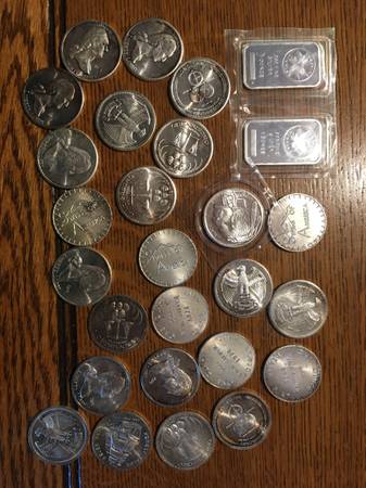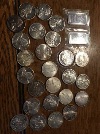 27 ounces of silver. This includes 7 Silver Eagles and a variety of others. Price is firm. Would consider trading for quality Eskimo artifacts.