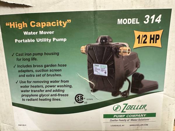 $400 value new. Will sell for $150 cash. No trades, Barters, etc. No longer needed since I retired my Handyman Business. Zoeller is Top of the Line Quality Parts. Note: this is not a "Sump" Pump. It's a "Utility" Pump to transfer water. Do not submerge in water.