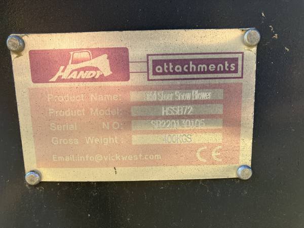 Handy 6' skid steer snowblower attachment. Barely used/like new condition. Manual snow chute operation. $5000 firm. Call or text Mark at 90seven-twofive0-six03two. skidsteer, John Deere, Bobcat,...