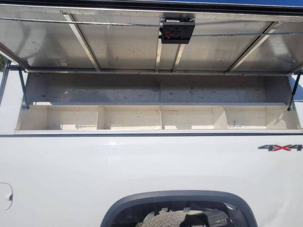 Made in Ohio- came up here on a work truck. Great condition. Both sides open, one w/ shelves for tool storage. All sides lock w/ key. Currently sitting on a 2021 Chevy Silverado 2500 HD long bed...