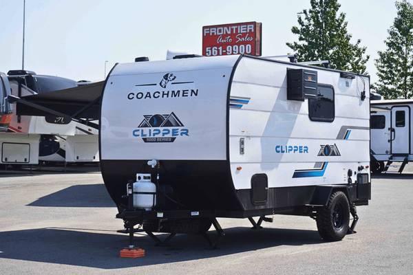 These Clipper ROK travel trailers allow you to camp anywhere you want, even off the beaten path a bit. Each model features electric brakes, easy lube axles, and 15" off-road heavy duty tires. There are frame-mounted stabilizer jacks to help keep your unit secure, and the outside shower with hot/cold water will come in handy when rinsing off hiking gear. A 5K BTU A/C unit and 20K BTU propane furnace will keep you comfortable as you camp, and there are 12V outlets along with 110V outlets to keep your electronics charged. An optional roof top tent can be added if you're needing additional sleeping space, and if you choose the optional Solar Package with a 200W panel and 30A solar controller, you can enjoy off-grid capabilities!