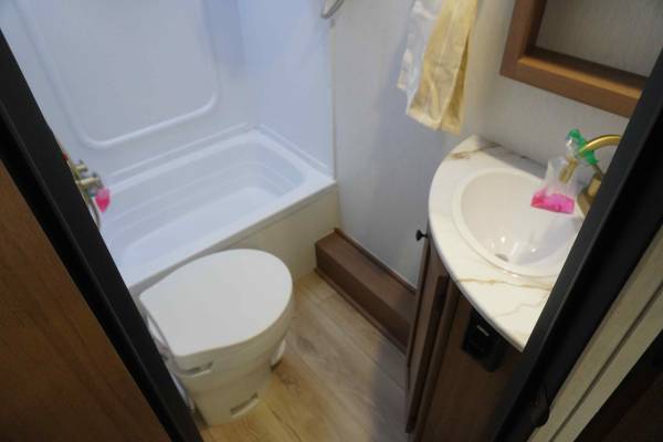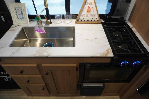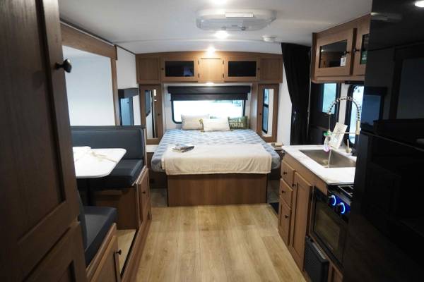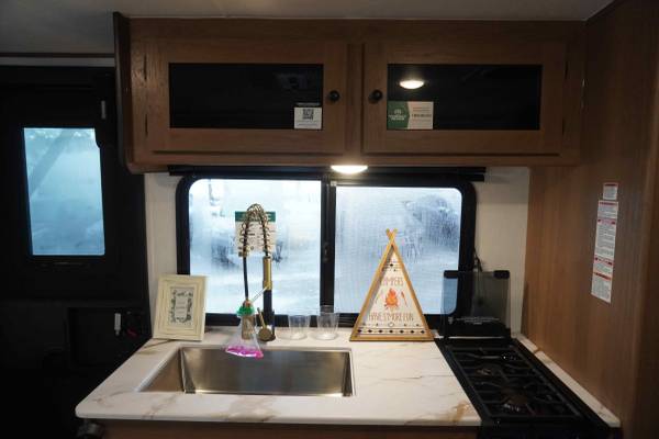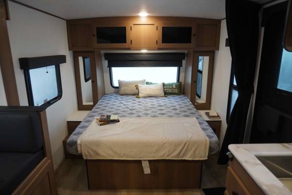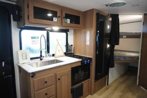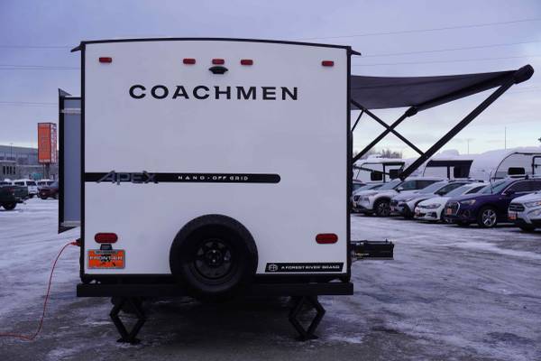 Built using Coachmen’s durable aluma-cage construction, dual Azdel laminated walls, and an I-beam chassis, the 208BHS is designed to handle Alaska’s conditions with confidence. A 400W solar panel with a 30A controller, hot/cold exterior shower, stabilizer jacks, power awning with LED lighting, and a high-velocity roof vent all come standard. Inside, you’ll appreciate the Congoleum flooring, seamless countertops, matte black hardware, and hand-crafted bathroom medicine cabinet that add a residential feel to your home on wheels.