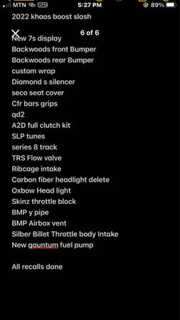 I have a 2022 Khaos Boost Matry slash It is a 155x2.75 Track Sled has around 750 miles Sled runs and rides great Everything done to the sled is Pictured Very fun and powerful sled