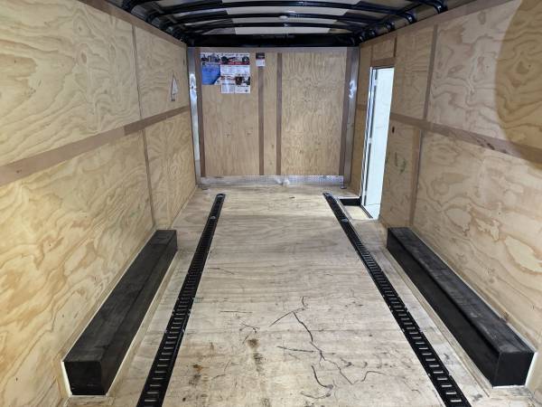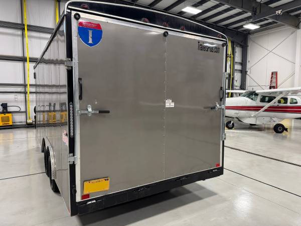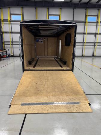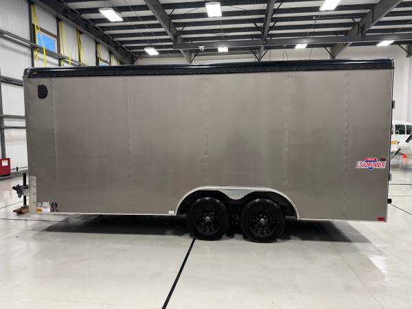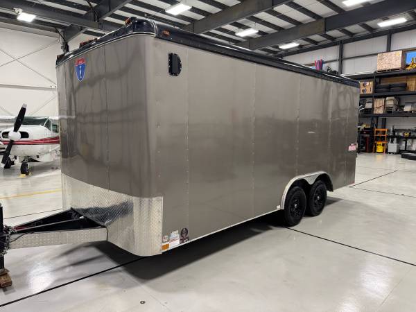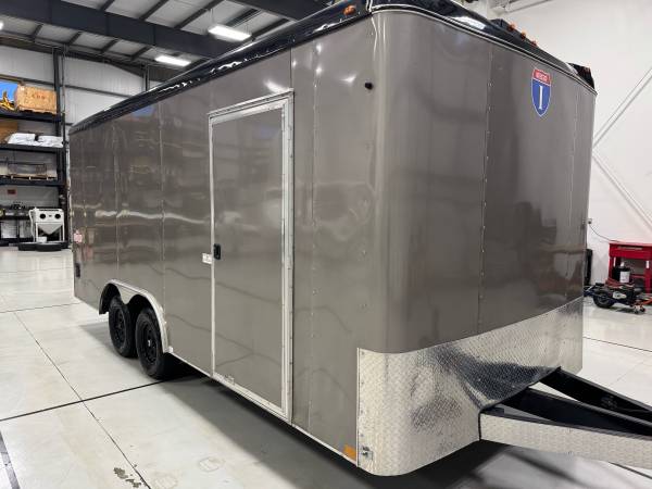2024 Interstate LoadRunner trailer. 8.5' wide x 18' long. Has drop down ramp door and side RV style door. This thing is big inside! Can easily fit four 4-wheelers, or three snow machines, or lots of tools! Comes with floor mounted e-tracks, d-ring tie-downs, and a spare tire. Was only used 4000 miles to move to Alaska. Full disclosure - does have a small amount of damage to the front top nose cap (pulled into a carport) but is still water / weather tight. Serious inquiries only. Not interested in trades.