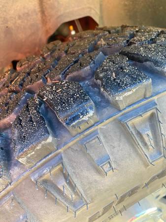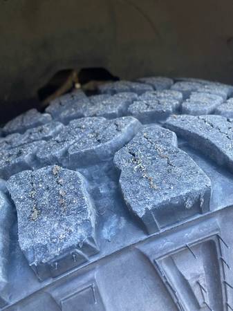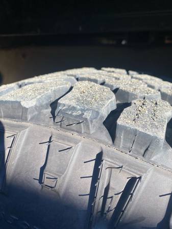 Nice snow rated tires predrilled for studs on 8x6.5 American racing wheels. Tires in really good shape, lots of tread depth. Wheels in good condition with little chrome peeling, overall good condition. Comes with lug nuts and 2 center caps